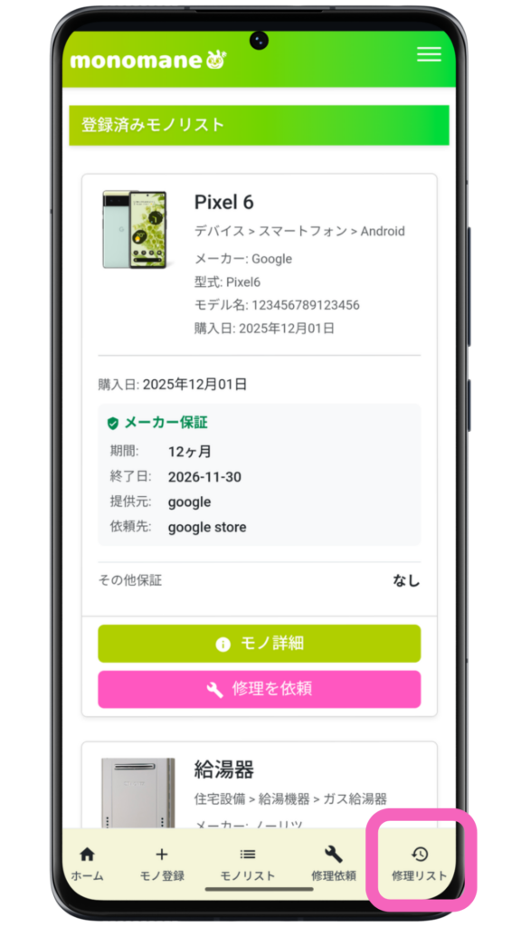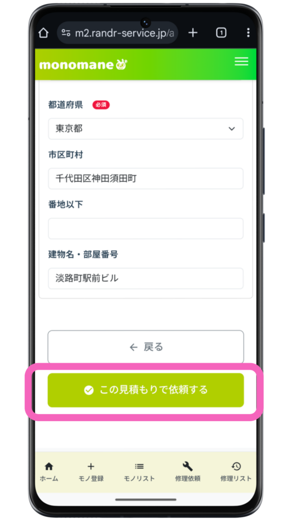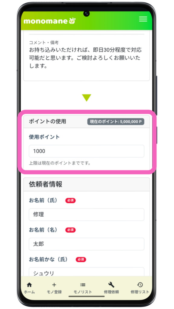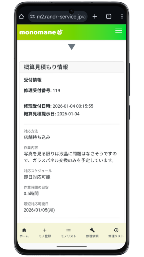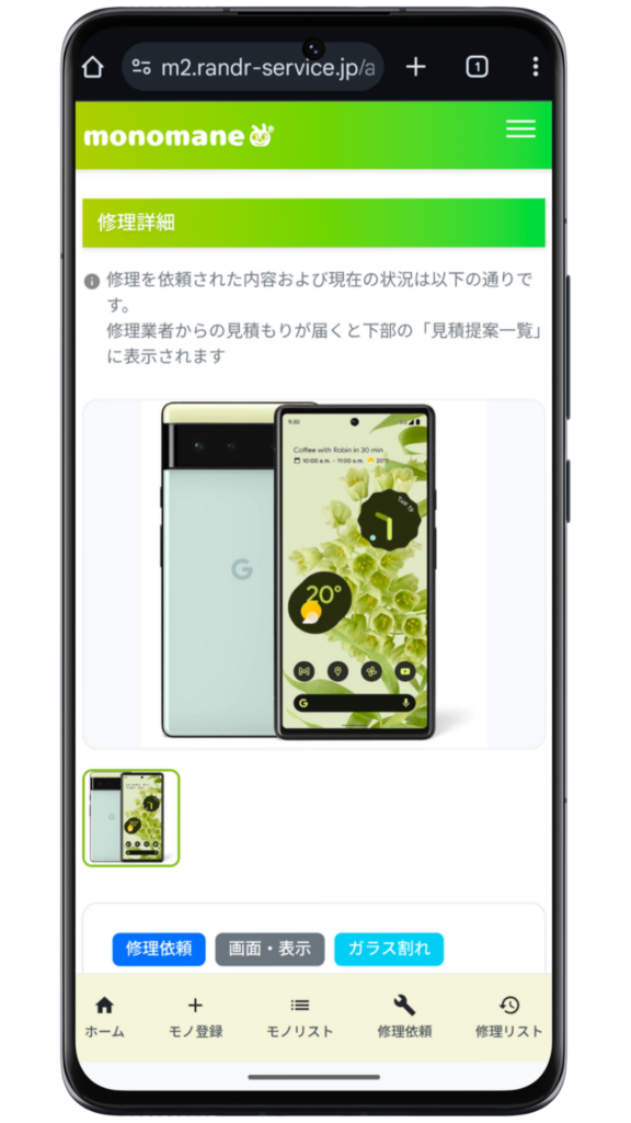 - monomaneで修理を依頼したこと