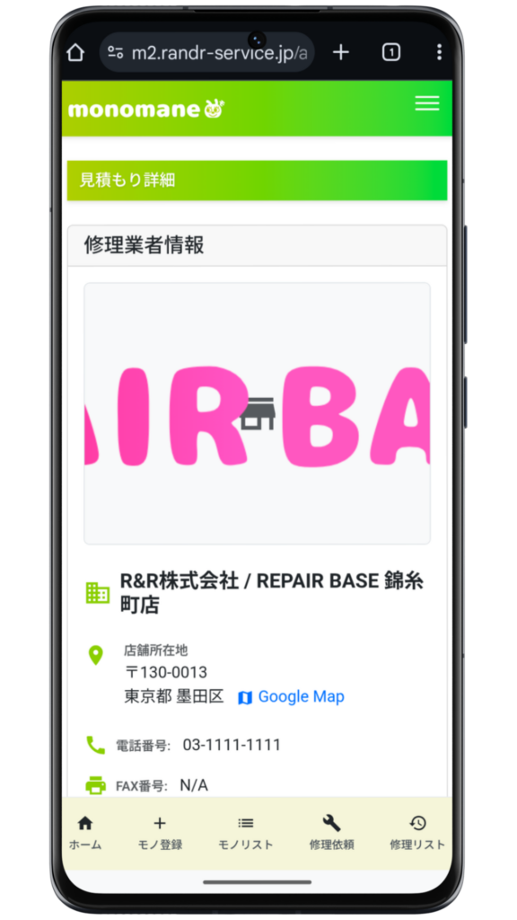 どんな店舗で場所はどこにあるのか、など修理業者の情報を確認することができます。