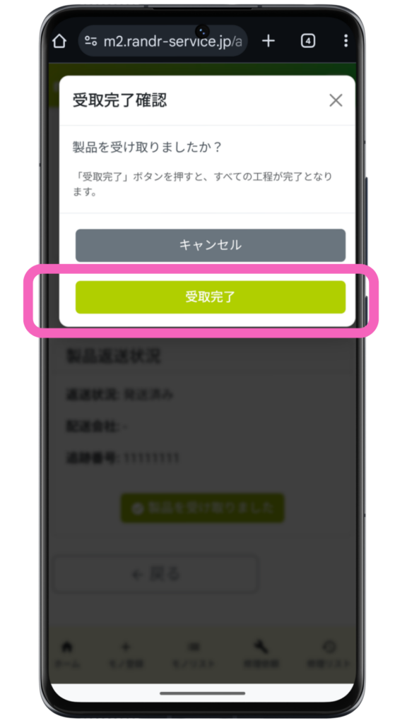 ~修理業者が作業完了し、修理完了品を返送~ - 修理詳細ページで「受取登録」を行う