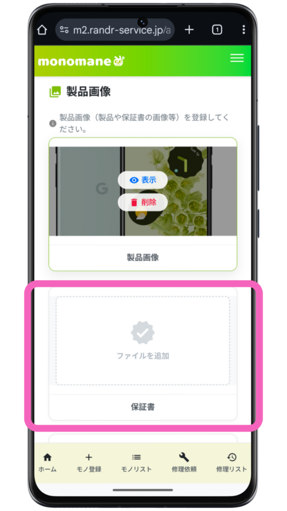 この手順は別の記事で解説しています。保証明細の登録は任意なので、初めてモノ登録する場合はスキップしてOKです。